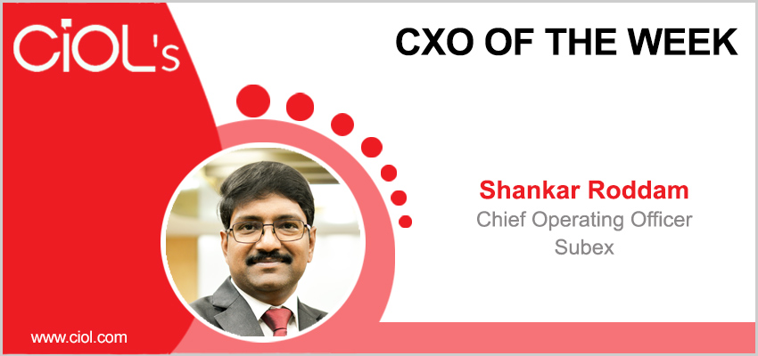 CiOL has chosen Shankar, Chief Operating Officer, Subex, CxO Of The Week. The CxO is responsible for Sales, Marketing, Engineering and Delivery. He comes with extensive international experience and ability to scale businesses in highly competitive environments, particularly around the SaaS space.