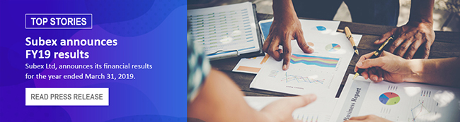 Hi all, I am excited to present to you the next edition of our newsletter, and also bring to you some exciting updates from Subex. We just announced our financial results for FY 19, and I am happy to state that our revenue for the year stood at INR 3,481 million, clocking an increase of 7.3%. Further, our Profit after tax was INR 252 million which is a significant 21.7% increase from FY18.